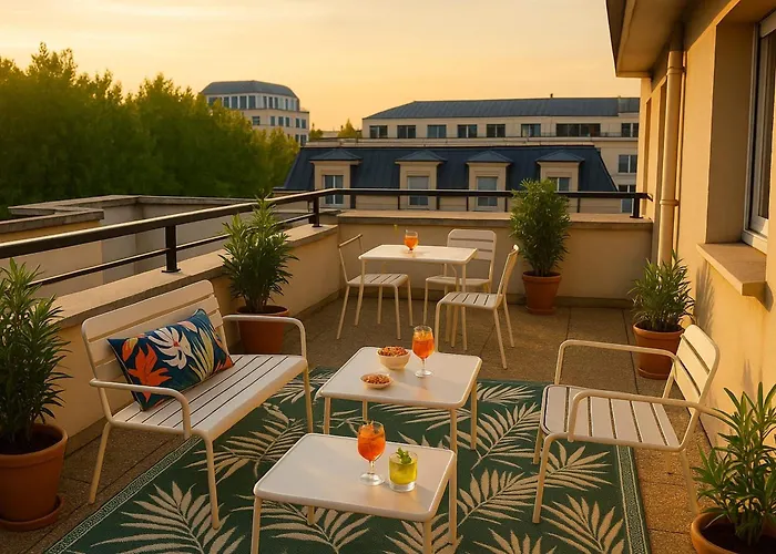 Die Unterkünfte bietet seinen Gästen die Annehmlichkeiten von Selbstversorgern, wie eine komplette Küche und einen Essbereich im Freien. Das Restaurant Femezon mit französischen Gerichten liegt rund 300 Meter von hier entfernt. Der Bahnhof Val d'Europe liegt in etwa 600 Meter Entfernung, und die Bushaltestelle Gare de Val d'Europe ist innerhalb von ca. 10 Gehminuten vom Apartment aus zu erreichen.